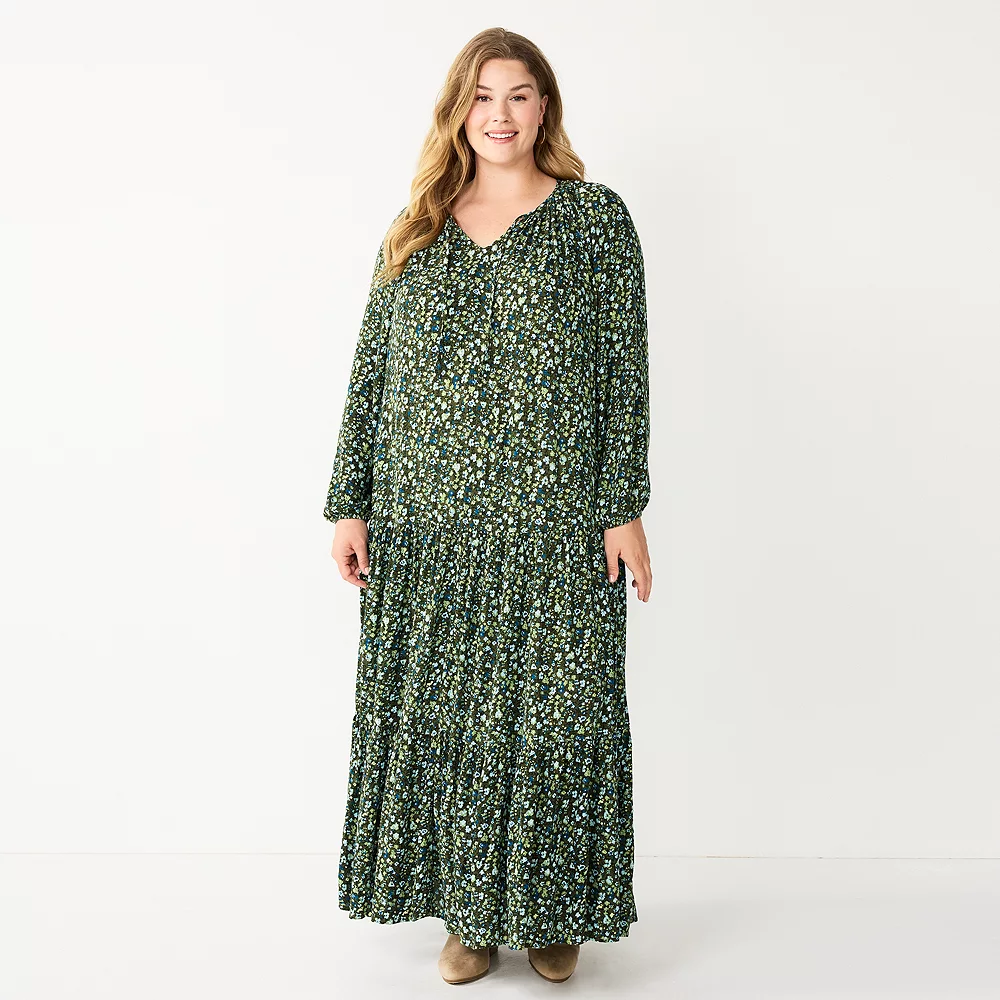 Plus Size Sonoma Goods For Life® Tiered Long Sleeve Maxi Dress